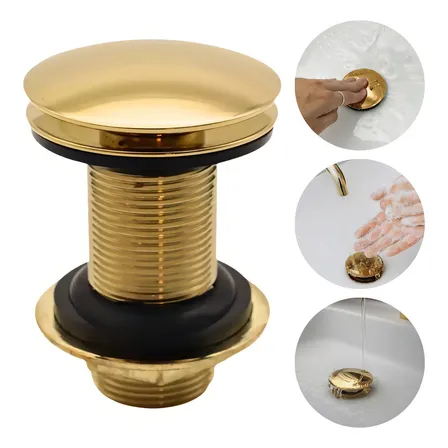 Válvula Click Dourada Ralo Inox 7/8 Gold Brilhante Pia Banheiro Cuba Lavabo Dourado