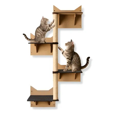 Arranhador Com Plataformas Para Gatos Escalador De Parede Para Gato Poste De Sisal Escalada Com Prateleiras Boxfan Ocre