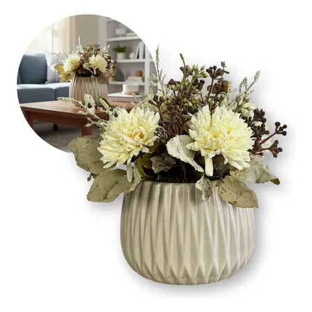 Arranjo Flor De Cravo Creme Permanente Vaso Cerâmica Marfim Creme