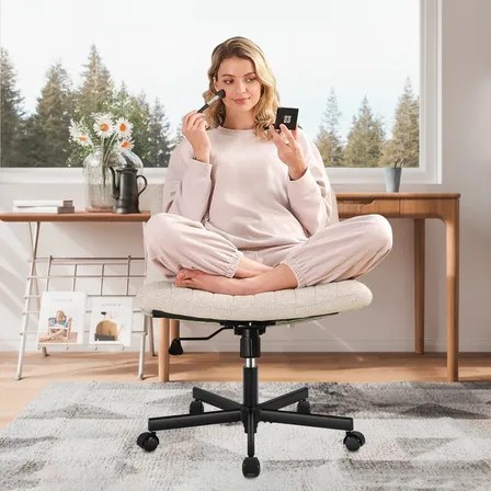 Cadeira Escritório Python Fly Assento Largo Giratória Encosto Reclinável Bege Algodão