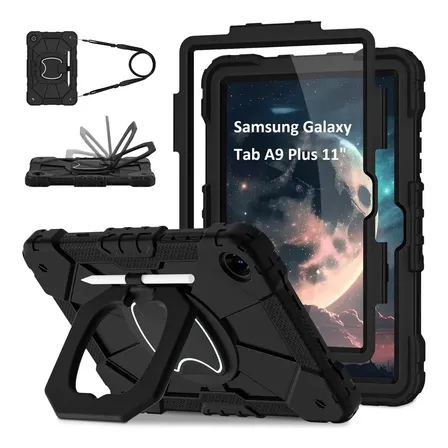 Capa Para Samsung Galaxy Tab A9 Plus 11 2023 (sm-x210/x216/x218) Kit Capa Tablet: Protetor, Suporte 360°, Alça Preto