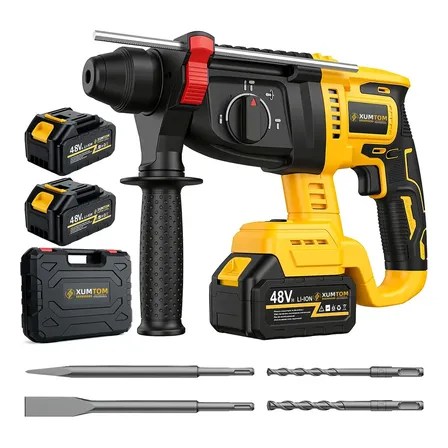 Furadeira Martelete Impacto 3000w 2x Baterias + Maleta Amarelo 48v