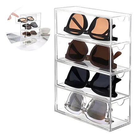 Porta Óculos Escuro Sol Organizador Estojo 4 Divisórias Case Cor Transparente