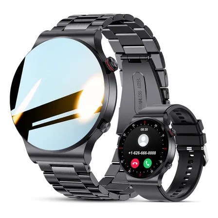 Relógio Inteligente Homem Smartwatch Esporte Negócio Chamada Com Tela Hd De 1,39 E Chamadas Bluetooth, Monitor De… Preto Pulseira De Aço Inoxidável Pulseira De Silicone