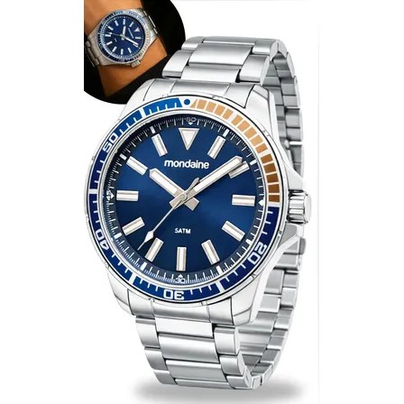Relógio Mondaine Masculino Bicolor De Pulso Analógico Quartzo Prata Fundo Azul Brilha No Escuro Prova D’água 50 Metros Prateado Azul Marinho E Nude (bicolor)