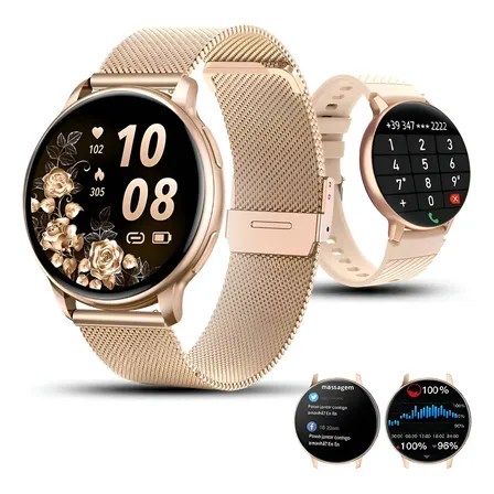 Smartwatch Chamada Relógio Inteligente Feminino/mulher Doura Dourado Milanês