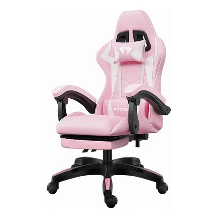 Cadeira Gamer Python Fly Rosa/branco Reclinável 150kg Apoio De Pés Couro Sintético