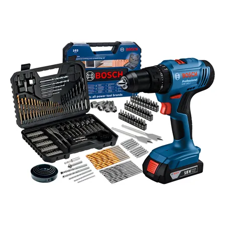 Furadeira Parafusadeira De Impacto 18v Bateria Bosch Gsb 183li + Jogo De Brocas Bits Profissional 103 Peças Azul-marinho 127/220v 60hz