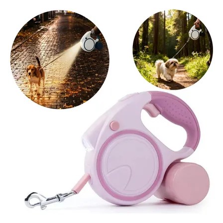 Guia Para Cães Automática Retrátil Coleira Led 5m Resistente Cor Rosa