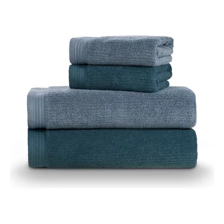 Jogo De Toalhas Banho 4pç 100 Algodão Softmax Imperial Karsten Azul Liso