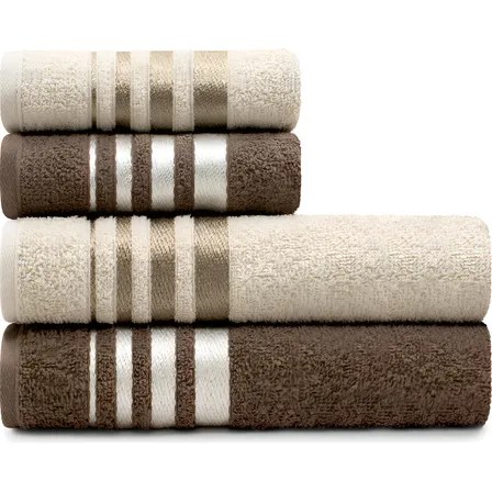 Jogo Toalhas De Algodão 4 Peças Banho E Rosto Bege Marrom Karsten Liso