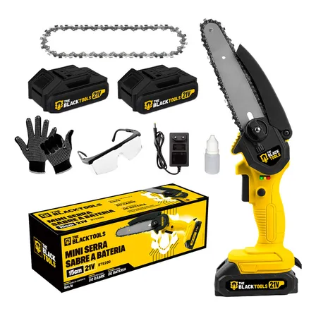 Kit Motosserra Elétrica Portátil 6 Pol 2 Baterias 21v Recarregável Bivolt Bts-200 The Black Tools Amarelo 127/220v 60hz