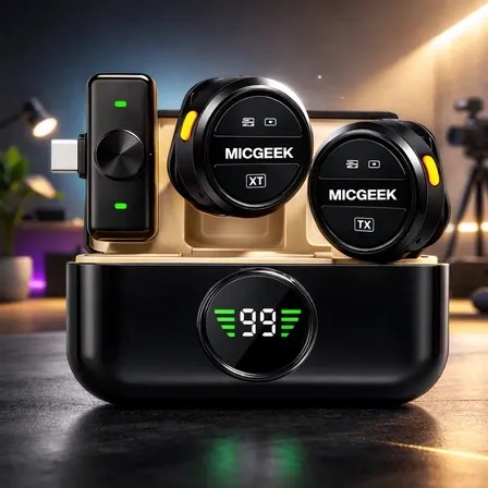 Microfone Lapela Redondo Sem Fio Tipo-c Duplo Anti Ruído P/ Android E iPhone 15 16 17 Com Caixinha Para Carregamento Cor Preto Micgeek