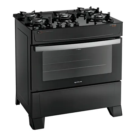Fogão 5 Bocas Atlas Atenas Glass Preto A Gás Com Mesa De Vidro E Mega Chama Bivolt 127/220v