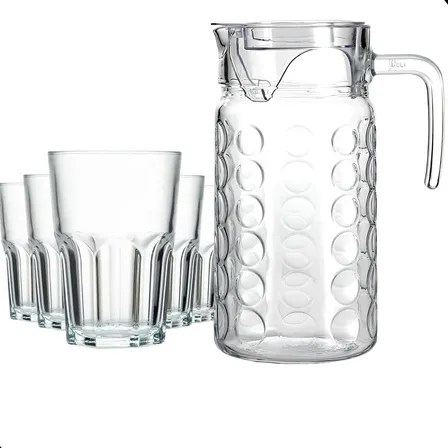 Jogo De Jarra Com Copos 7 Pçs De Vidro Ideal P/ Água E Suco Sydney