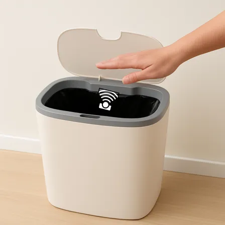 Lixeira 14l Automática Sem Toque Cozinha Banheiro Escritório Branco E Cinza