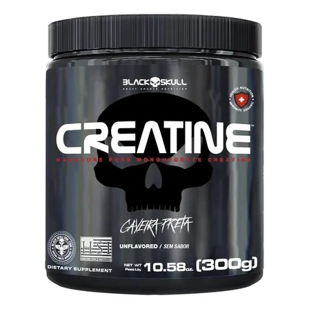 Suplemento Em Pó Creatina 300g Pura Black Skull Sem Sabor Potencialize Sua Força E Recuperacao Muscular