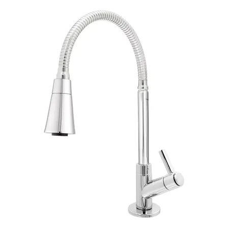 Torneira Cozinha Gourmet Pia Bancada Tubo Flexível Cone 2 Jatos Chuveirinho Arejador Cromado Acabamento Brilhante Cor Prateado