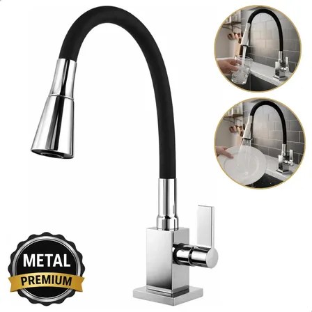 Torneira Gourmet Pia E Cuba Cozinha Flexível Chuveirinho Cone 2 Jatos Bancada Mesa Luxo Grande Em Metal 1/4 De Volta Cromada Preta Bico Arejador – Softinox Cromado/preto Bancada Brilhante